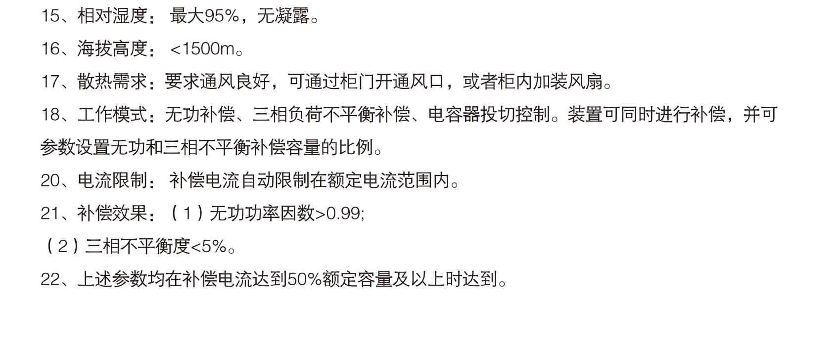 3、額定容量內(nèi)補(bǔ)償后系統(tǒng)三相有功負(fù)荷電流不平衡度小于5%。