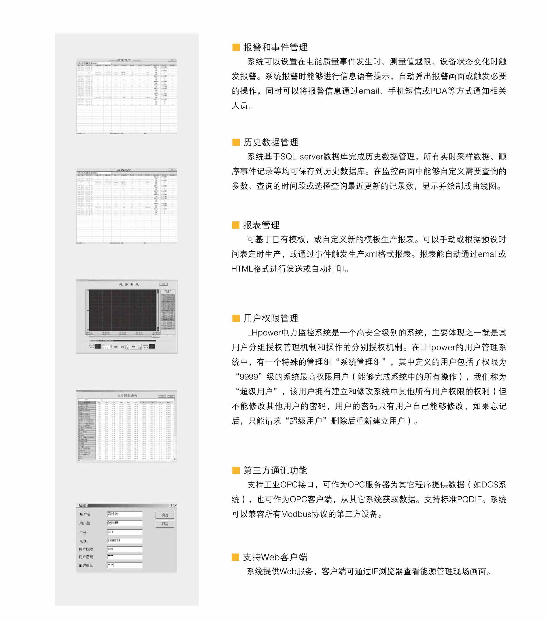 LHpower電力監(jiān)控系統(tǒng)是一個全開放的電力自動化系統(tǒng)開發(fā)平臺,它是我公司于國內主要電力產品供應商深入合作的結晶。我公司通過與主要電力設備生產商及電力系統(tǒng)集成商的合作,深刻地理解了電力系統(tǒng)對相關軟件產品的需求,并利用自己在自動化領域多年積累的經驗,將工業(yè)自動化軟件的一些先進思想滲透到ESpowerl的產品研發(fā)中。在確保所開發(fā)軟件產品擁有符合相關電力標準及行業(yè)習慣的專業(yè)功能外,使其具有很好的易用性。